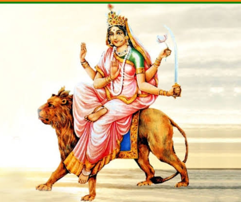 इनका स्वरूप अत्यंत ही भव्य और दिव्य है.इनका वर्ण स्वर्ण के समान चमकीला और भास्वर है.शेर पर सवार मां की चार भुजाएं हैं, इनके बायें हाथ में कमल, तलवार व दाहिनें हाथों में स्वास्तिक और आशीर्वाद की मुद्रा अंकित है.